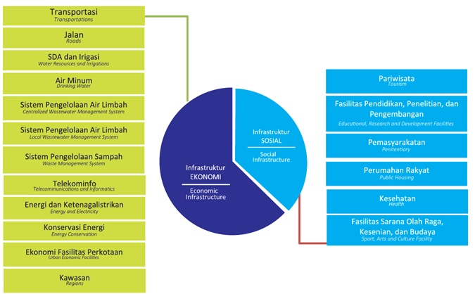 Terdapat pembagian sektor infrastruktur yang menjadi lingkup KPBU:
