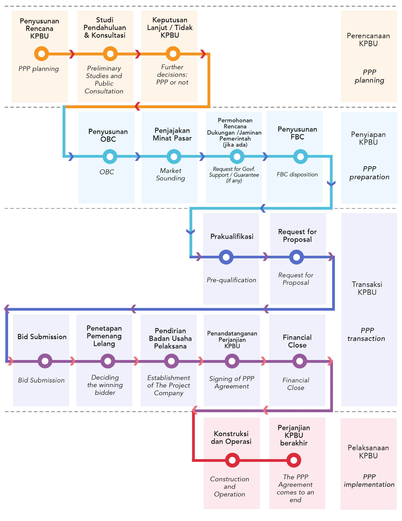 Berikut merupakan merupakan tahapan dalam pelaksanaan skema KPBU: