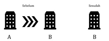A. Penggabungan dapat diilustrasikan seperti perusahaan A melakukan penggabungan diri kepada perusahaan B.